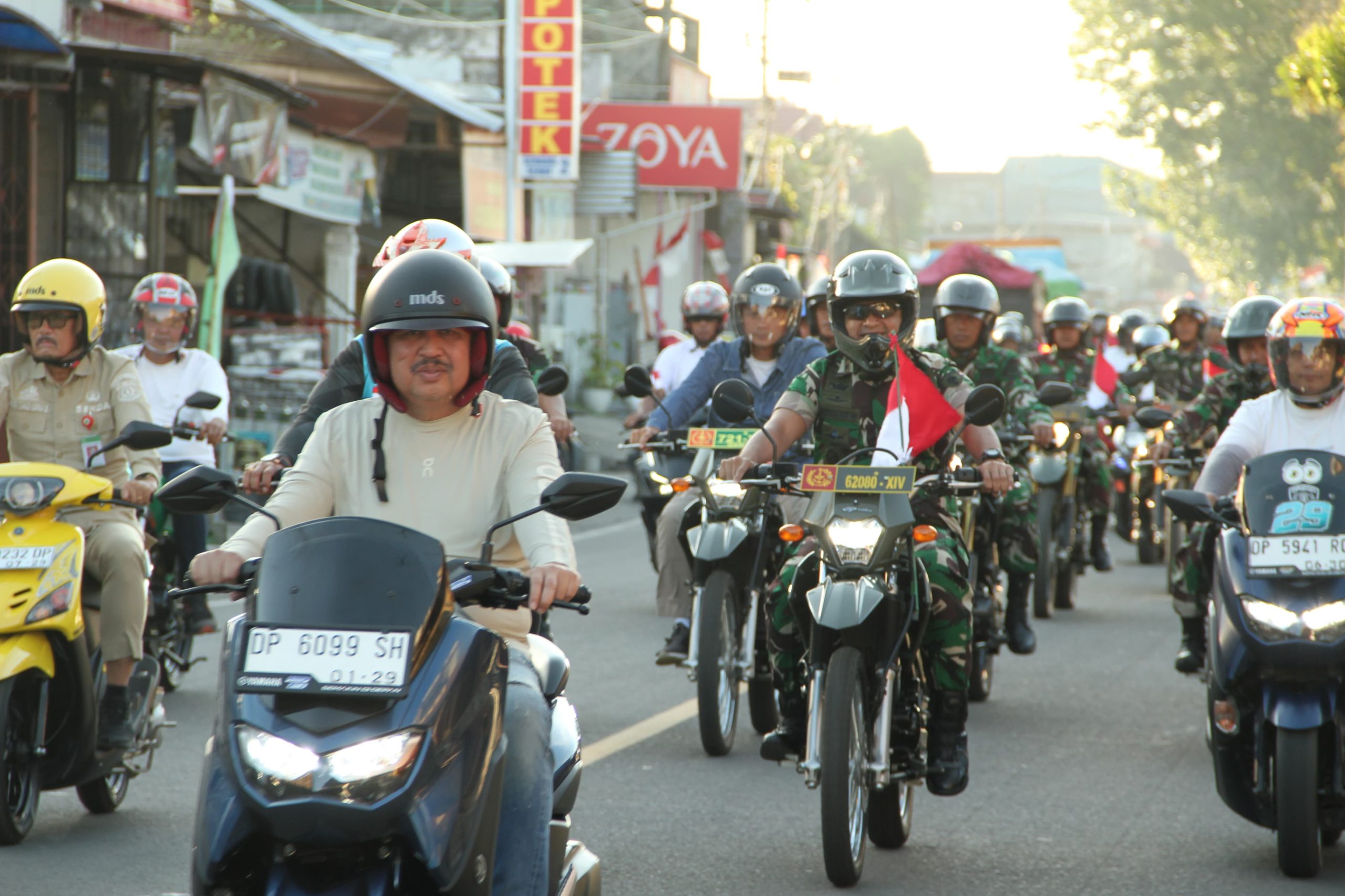 Pinrang_ Dandim 1404/Pinrang Letkol Inf Abdullah Mahua, S.H.I., M.M., bergabung dengan ribuan rider dari berbagai komunitas memadati kegiatan Merdeka Ride yang menjadi salah satu rangkaian memeriahkan Hari Ulang Tahun Kemerdekaan Republik Indonesia ke-80 tingkat Kabupaten Pinrang, Rabu (13/08/2025).