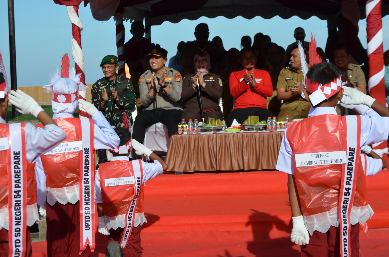 Sebanyak 50 peserta lomba gerak jalan tingkat pelajar SD se-Kota Parepare turut berpartisipasi dalam kegiatan lomba. Dengan tampilan kostum yang beraneka ragam serta ketangkasan baris berbaris para peserta menambah semarak peringatan Ulang Tahun ke-80 Republik Indonesia.