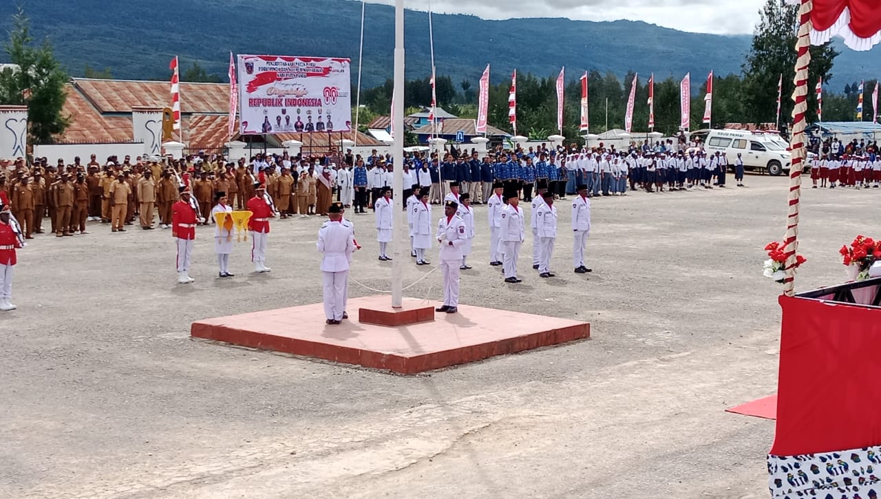 Kegiatan Upacara HUT RI Ke-80 di Kantor Bupati Kabupaten Paniai berjalan lancar dan aman.