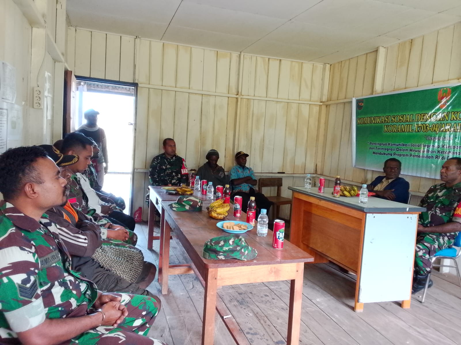 Di sela-sela itu Danramil 1703-04/Aradide (Lettu inf Alpius Gobai) dalam kesempatan itu mengatakan kepada seluruh kepala kampung, dan masyarakat yang hadir Bahwa komunikasi sosial (komsos) yang di laksanakan ini merupakan program yang harus di laksanakan sehingga membangun silahturahmi dan tali persaudaraan antar Babinsa dengan warga masyarakat , sehingga dapat menyampaikan usulan atau masukan dari masyarakat sesuai apa yang menjadi kebutuhan masyarakat di wilayah Aradide “, ungkap danramil 1703-04/Aradide