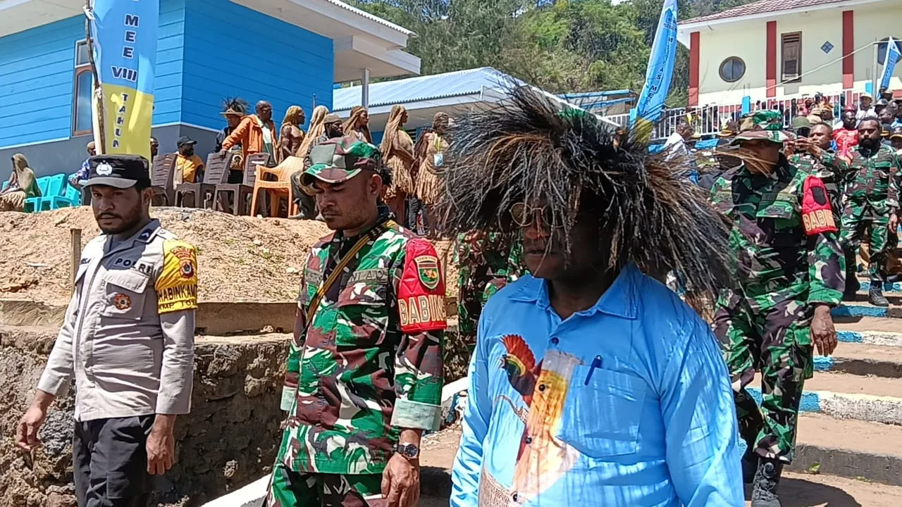 Acara Gereja khatolik Musyawarah Pastoral MEE ke VIII SE TANAH PAPUA di wilayah Gereja Katholik Paroki Kristus jaya komopa dekenat Paniai ke uskupan Timika di wilayah Aradide, sehingga Danramil 1703-04/Aradide (Lettu inf Alpius Gobai) Bersama Kapolsek Komopa (Ipda Robertus Tebai) bersama Babinsa dan anggota Babinkamtibmas menghadiri acara ibadah yang di selenggarakan pada hari ini , sehingga warga jemaat khatolik paroki komopa dan jemaat yang hadir dari berbagai wilayah seluruh Papua dalam acara tersebut melihat bahwa kehadiran Babinsa dan Babinkamtibmas di acara Musyawarah Pastoral MEE KE VIII SE TANAH PAPUA ini sangat mendukung jemaat paroki Kristus jaya komopa sehingga terlihat kerjanyata babinsa dan Babinkamtibmas di lapangan guna meningkatkan kemanunggalan TNI bersama Rakyat, kegiatan tersebut bertempat di halaman Gereja Katholik Paroki Kristus jaya komopa Kampung komopa , Distrik Aradide, Kabupaten Paniai provinsi Papua Tengah. Pada