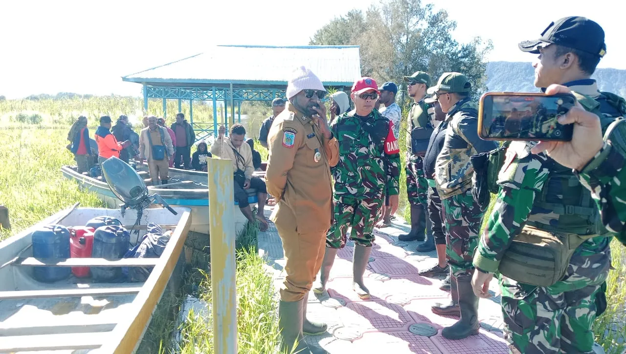 Paniai – Danramil 1703-01/Enarotali Kapten Inf Eko Warsito turut mendampingi Bupati Kabupaten Paniai, Yampit Nawipa, A.Md.Tek, dalam kegiatan penyaluran bantuan berupa beras kepada masyarakat yang terdampak banjir di Distrik Topiyai, Ekadide, dan Aradide Kabupaten Paniai, Provinsi Papua Tengah. Pada Senin (29/09/2025).