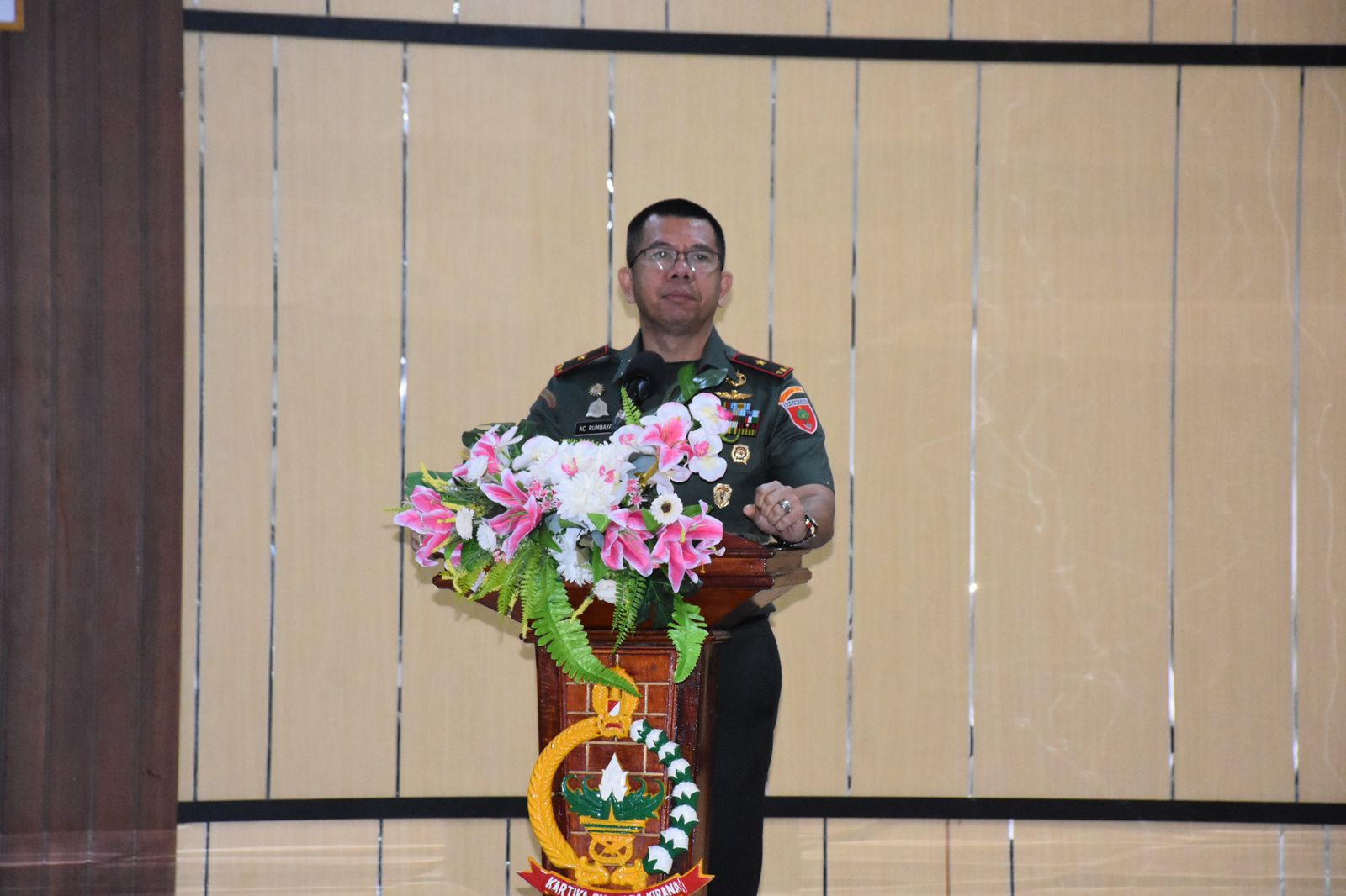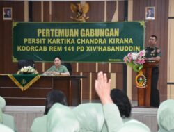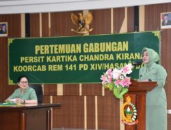 Watampone – Persit KCK Koorcab Rem 141 PD XIV/Hasanuddin menyelenggarakan Pertemuan Gabungan Persit Kartika Candra Kirana Sejajaran Koorcab Rem 141 PD XIV/Hasanuddin, yang dihadiri Danrem 141/Tp Brigjen TNI Andre Clift Rumbayan, S.Sos., M.M. selaku Pembina Persit Korem, bertempat di Aula Jend Sudirman Makorem 141/Tp, Kamis (12/06/2025)