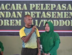 “Dengan penuh rasa hormat, saya mengucapkan terima kasih kepada Danrem 141/Tp, Kasrem, dan para Kasi atas arahan dan kepercayaan yang telah diberikan selama saya menjabat sebagai Dandenma. Terima kasih juga kepada seluruh rekan perwira, prajurit, dan PNS Korem 141/Tp atas kebersamaan dan dukungan yang luar biasa. Semoga silaturahmi dan kerja sama yang baik ini terus terjaga meski nantinya saya bertugas di tempat yang baru”. Ucap Mayor Inf Alfred Tonak