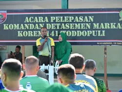 Bone – Komandan Korem 141/Tp, Brigjen TNI Andre Clift Rumbayan, S.Sos., M.M., memimpin langsung acara pelepasan Komandan Detasemen Markas (Dandenma) Korem 141/Tp, Mayor Inf Alfred Tonak, bertempat di Lapangan Tenis Makorem 141/Tp, Jl. Jend. Sudirman, Kabupaten Bone, Selasa (18/11/2025).