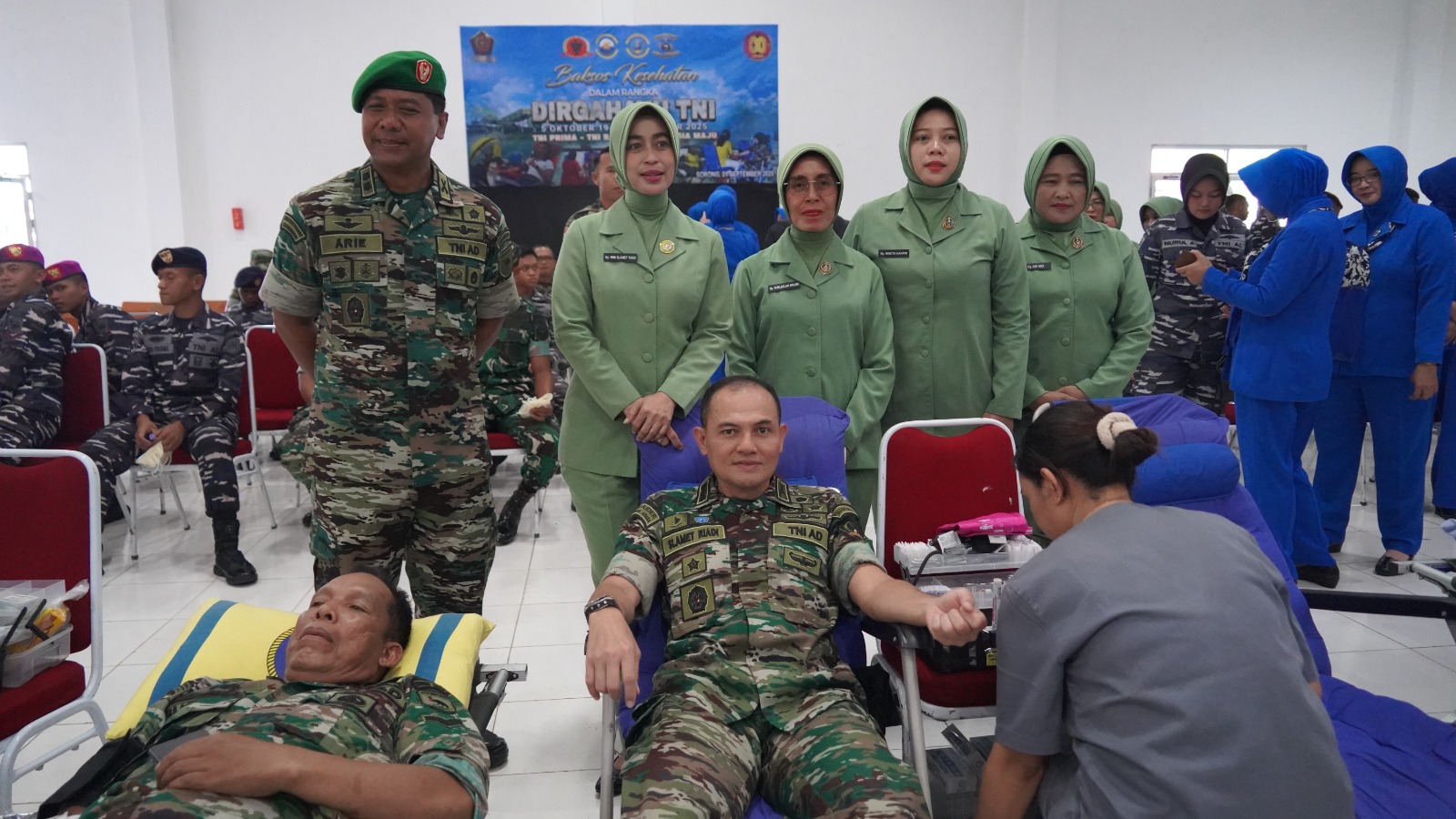 Sorong – Papua Barat Daya, Dalam rangka memperingati HUT ke-80 TNI Tahun 2025, Korem 181/Praja Vira Tama yang dipimpin langsung oleh Danrem 181/PVT Kolonel Inf Slamet Riadi, S.I.P., didampingi Ketua Persit KCK Koorcab Rem 181 PD XVIII/Kasuari Ny. Rini Slamet Riadi, turut berpartisipasi dalam kegiatan Bakti Sosial Kesehatan donor darah yang digelar di Gedung Serba Guna (GSG) Kodaeral XIV Sorong, Minggu (21/9/2025).