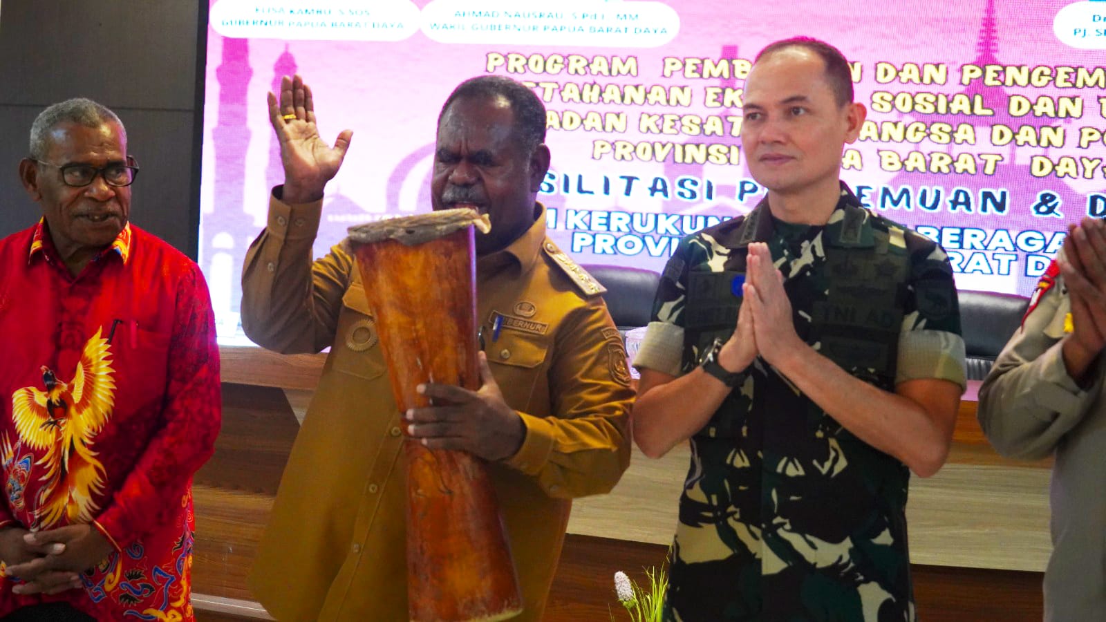 Momentum ini juga ditandai dengan Deklarasi Damai yang dipimpin langsung oleh Gubernur Papua Barat Daya, ditandai dengan prosesi tumbuk tifa serta pembacaan komitmen bersama menjaga kerukunan antar umat beragama, adat, dan budaya.