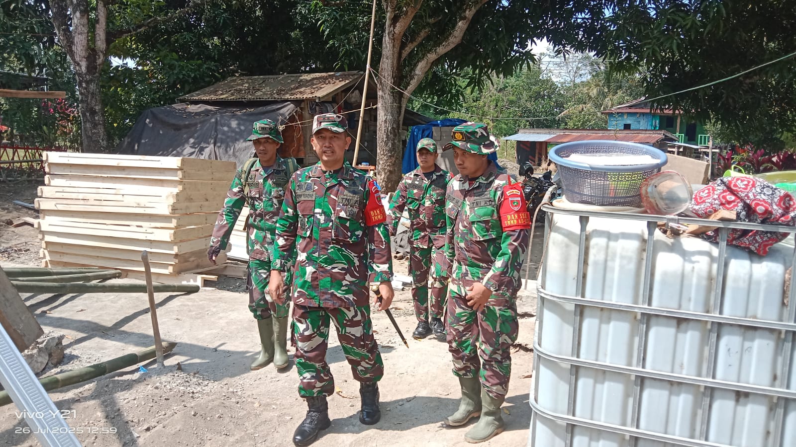 Dalam kunjungannya, Letkol Agung Yuhono memantau progres pembangunan rumah serta memberikan arahan langsung kepada para personel Satgas di lapangan.