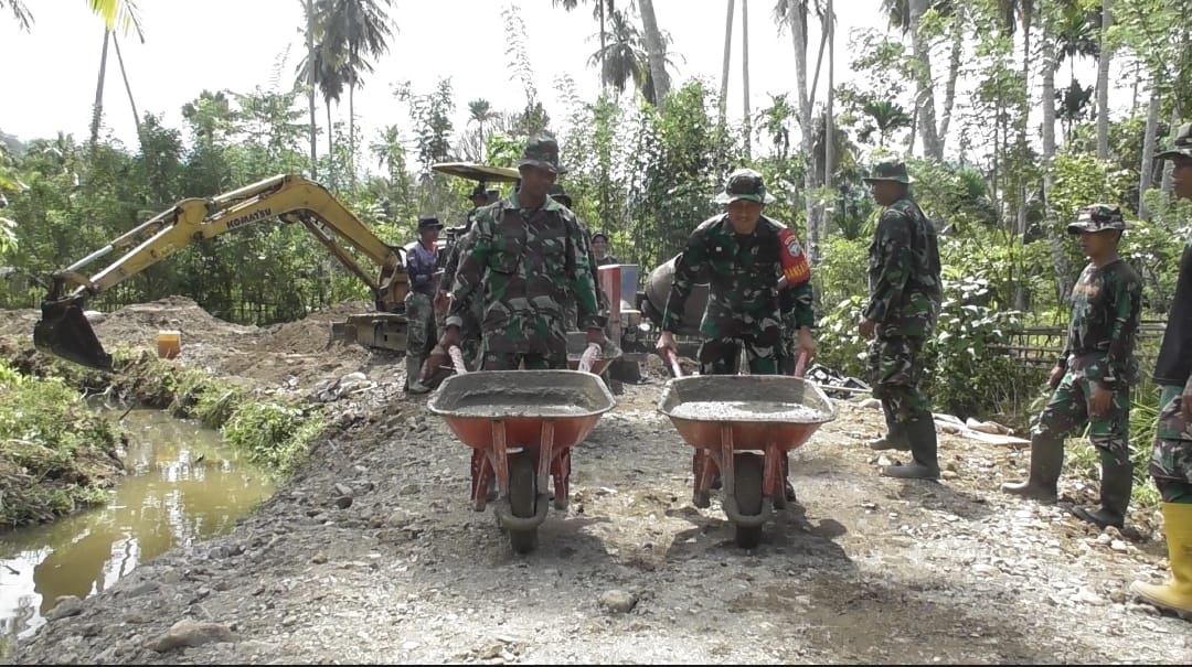 Kegiatan pengecoran jalan ini merupakan bagian dari upaya percepatan pembangunan infrastruktur di wilayah pedesaan, khususnya untuk membuka akses transportasi yang lebih baik bagi masyarakat. Bersama para prajurit TNI Dansatgas turut serta membawa bahan material dan mengawasi langsung proses pengecoran.