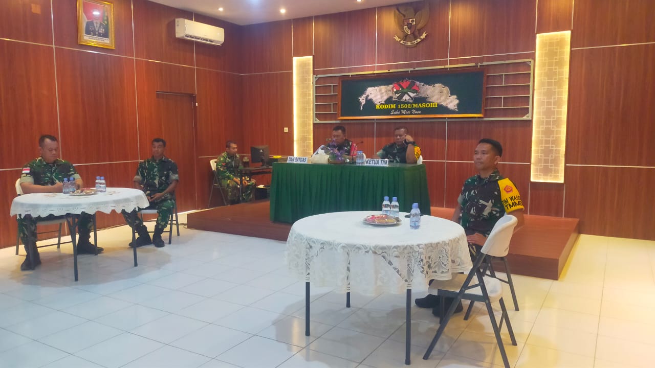 Dansatgas TMMD ke 124 Kodim 1502/Masohi Letkol Czi. M. Yusuf Aksa,S.T.,M.M memaparkan Program TMMD ke Tim Wasev Staf Ter Angakatan Darat (Sterad) yang dipimpin langsung oleh Katim Wasev Kolonel Inf Shofanudin, S.I.P.,M.,Han dan Kapten Inf. Edy Riwanto, S.T.,Han.,S.I.P yang dilaksanakan di Aula Makodim 1502/Masohi. Selasa (20/05/2025).