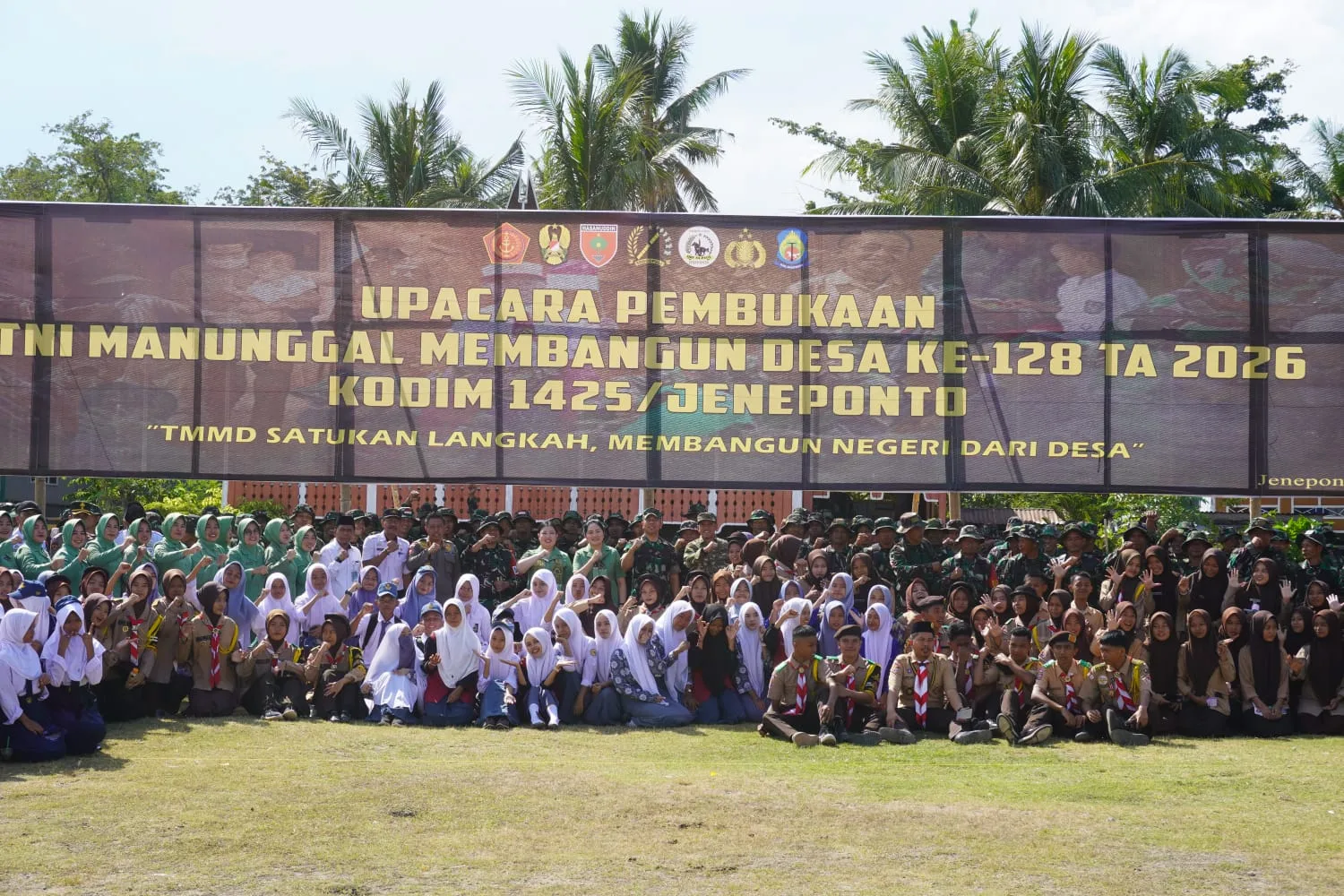Pembukaan program TNI Manunggal Membangun Desa (TMMD) ke-128 TA 2026 resmi dibuka secara serentak di Kodim 1415/Selayar dan Kodim 1425/Jenepo