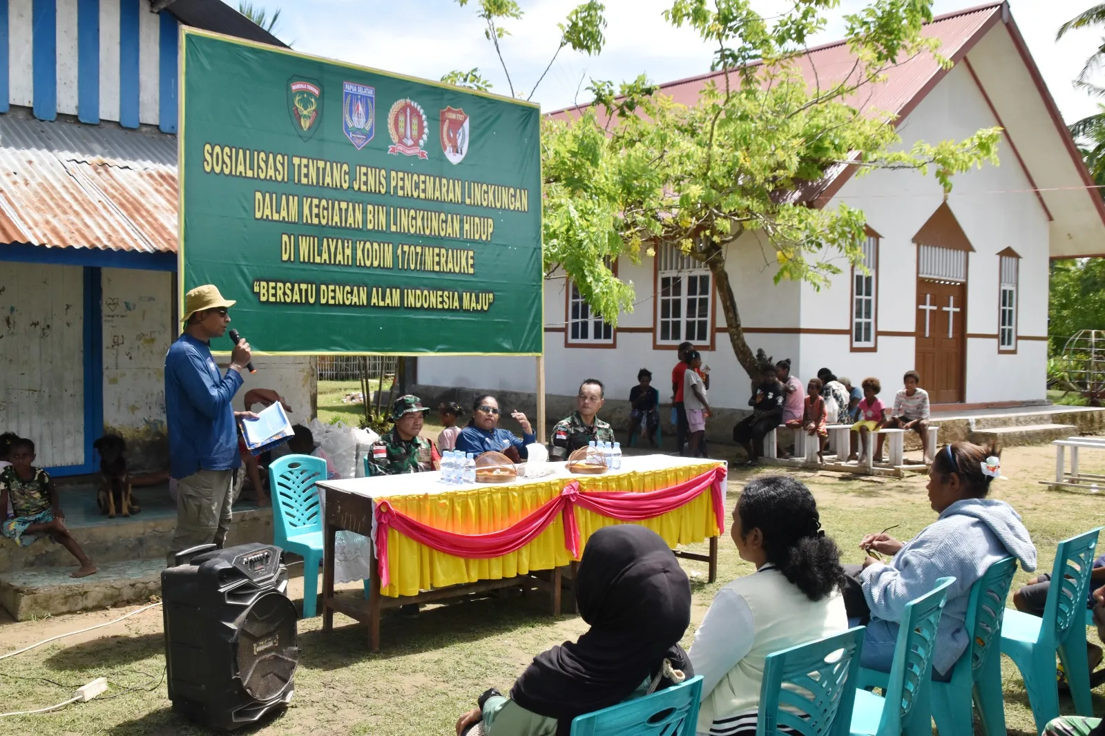 Sosialisasi tersebut terlaksana atas kerja sama Kodim 1707/Merauke dengan Dinas Lingkungan Hidup Provinsi Papua Selatan. Hadir sebagai narasumber, Bapak Yanuarius Filipus Ulukyanan Kepala Seksi Penyuluhan Bidang DAS dan Perhutsos Dinas Lingkungan Hidup Kehutanan dan Pertanahan Prov. Papua selatan, yang menyampaikan materi dengan bahasa sederhana agar mudah dipahami, khususnya oleh anak-anak dan warga setempat.