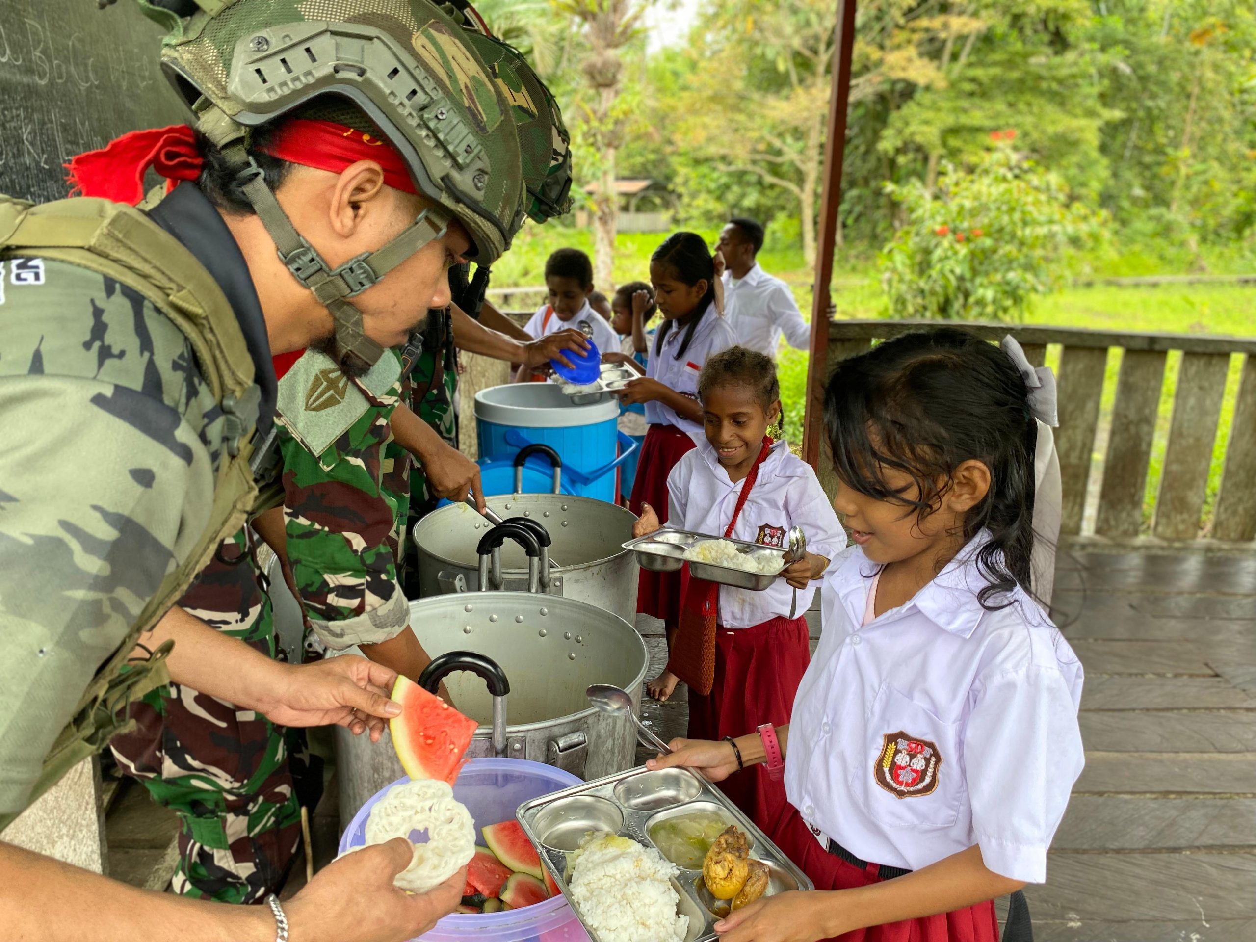Papua, 09 September 2025 – Di tengah hutan Papua, harapan baru tumbuh subur. Satuan Tugas Pengamanan Perbatasan (Satgas Pamtas) Mobile Yonif 733/Masariku menggelar kegiatan “Masariku Peduli Gizi” di Sekolah Dasar (SD) Rimba Mumugu, Distrik Sawa Erma, Kabupaten Asmat sebagai komitmen nyata untuk meningkatkan kualitas hidup anak-anak di garis depan NKRI.
