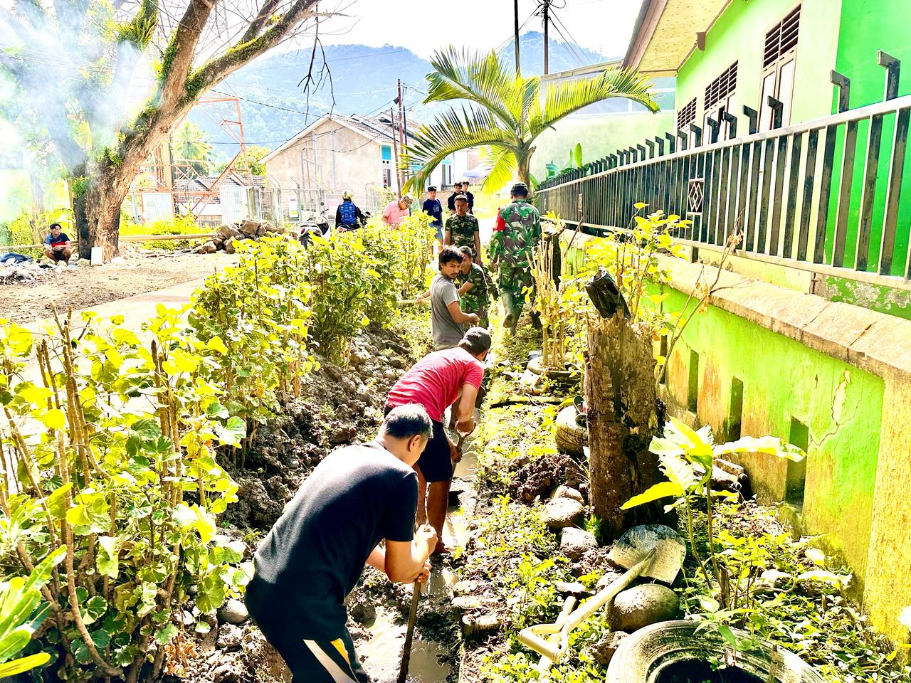 Bukan itu saja. Anggota TNI dan warga juga mengeruk endapan lumpur di selokan tersebut. Sehingga dalam waktu tak terlalu lama, lingkungan pemukiman itu tampak menjadi lebih bersih dan lebih nyaman.