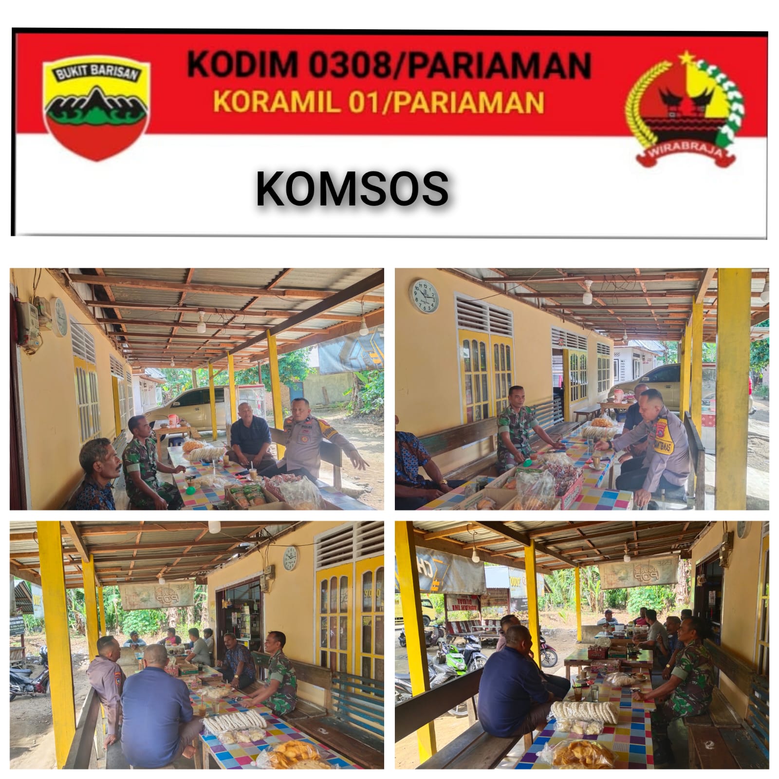 Seperti yang dilakukan Babinsa Koramil 01/Pariaman Kodim 0308/Pariaman, Serda Desrianto bersama Bhabinkamtibmas IPDA Ardi putra melaksanakan Komsos di Warung kopi warga Binaan di Desa Talago Sariak Kecamatan Pariaman Timur, Kota Pariaman, Rabu (16/07/2025).