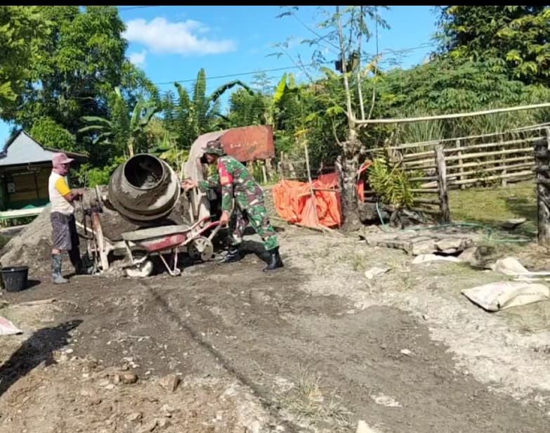 KODIM 1405/PAREPARE – Dengan semangat gotong-royong Babinsa Koramil 1405-06/Barru Serda Agus Jumeno bersama masyarakat bahu membahu melaksanakan kegiatan gotong royong pengecoran Jalan, bertempat di Dusun Tompo Desa Tompo Kecamatan Barru Kabupaten Barru. Jum’at (27/06/2025)