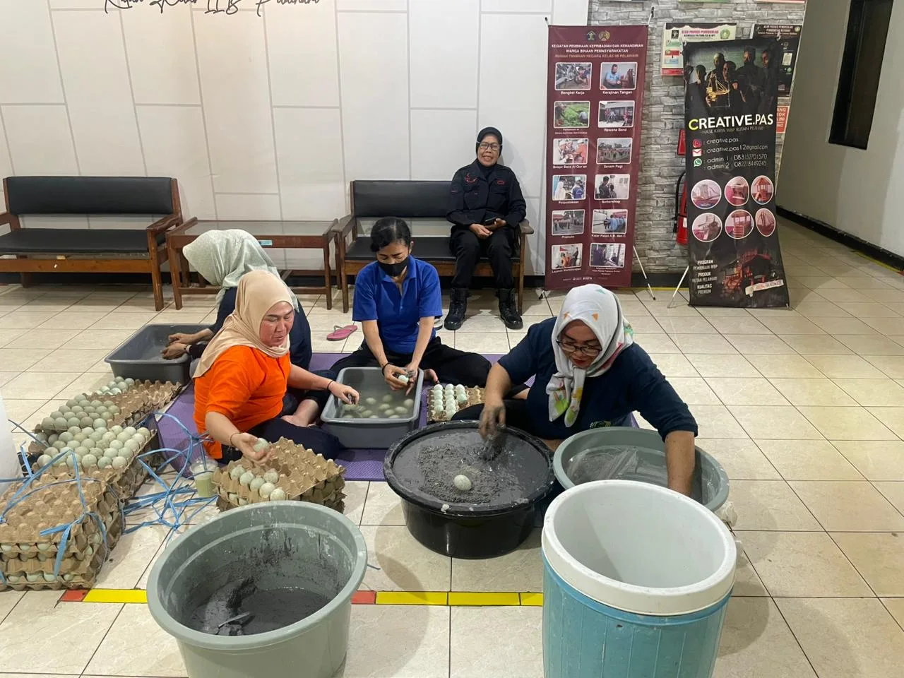 Pembinaan kemandirian pembuatan telur asin di Rutan Pelaihari tidak lagi sekadar kegiatan rutin—karena permintaan pasar terus datang. Alur kerja dijaga ketat: telur dipilih yang benar-benar berkualitas, dicuci bersih, lalu diproses dengan adonan pengasinan yang tak boleh asal campur. Setelah itu, telur diperam sesuai waktu yang ditentukan—tahap yang sering dianggap sepele, padahal paling menentukan rasa, aroma, dan ketahanan produk.