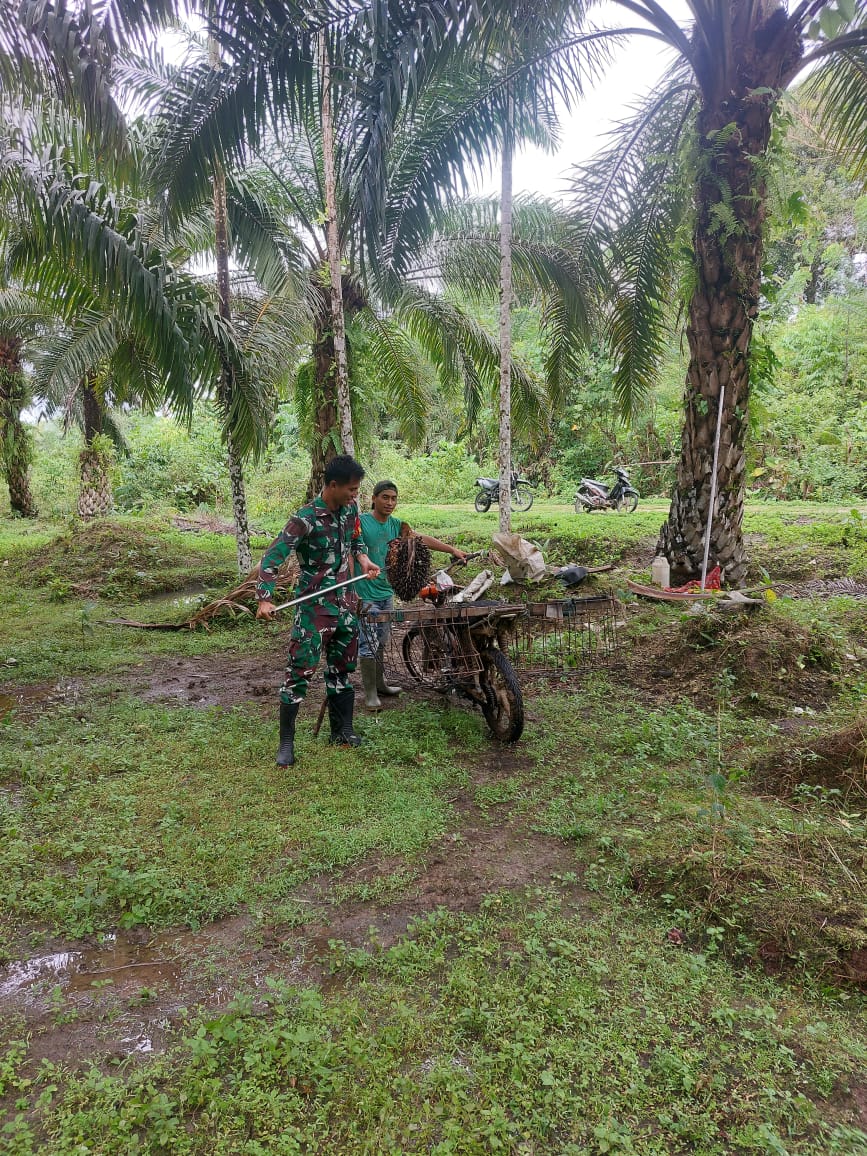 Sertu Joy Darsa Babinsa Koramil 03/Teupah Selatan, Kodim 0115/Simeulue, Korem 012/Teuku Umar. Melaksankan kegiatan Komsos sekaligus membantu warga desa binaan memanen sawit milik warga yang nanti nya akan di jual kepada pembeliDi Desa Kebun Baru, KecamatanTeupah Selatan, Kabupaten Simeulue. Selasa (10/06/2025).