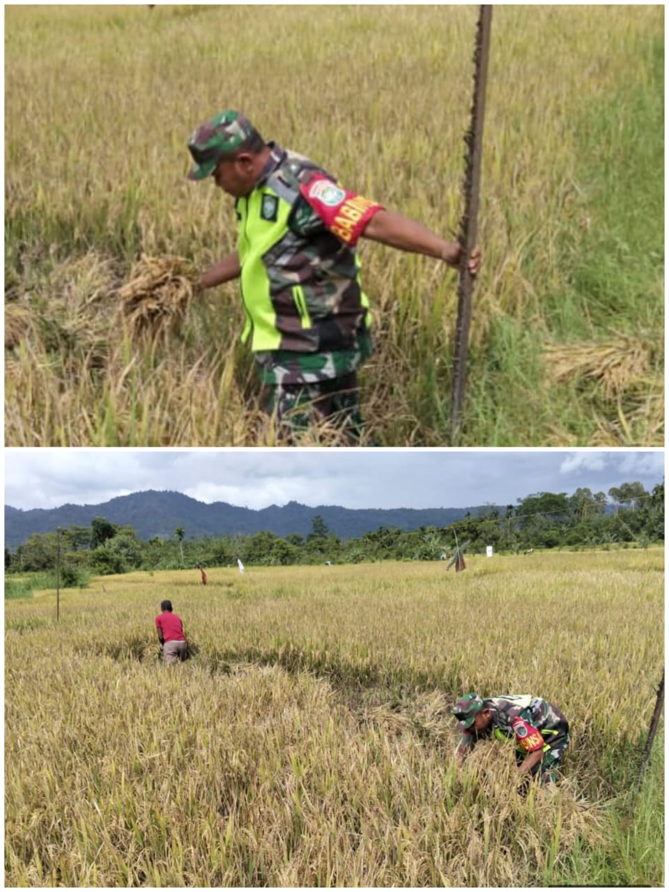 Dalam kegiatan tersebut, Serda Murdani tidak hanya hadir sebagai pengawas atau penggerak, tetapi benar-benar ikut membantu memotong padi secara tradisional dengan menggunakan arit/sabit di sawah milik Pak Lukman. Langkah ini menjadi simbol keterlibatan aktif TNI, khususnya aparat kewilayahan, dalam mendukung program pemerintah di sektor pertanian.
