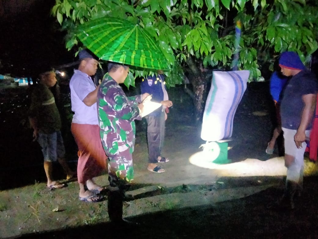 Gelapnya Malam Tak Menyurutkan Semangat Babinsa Kodim 1404/Pinrang Dampingi Penyerapan Gabah Petani Oleh Bulog
