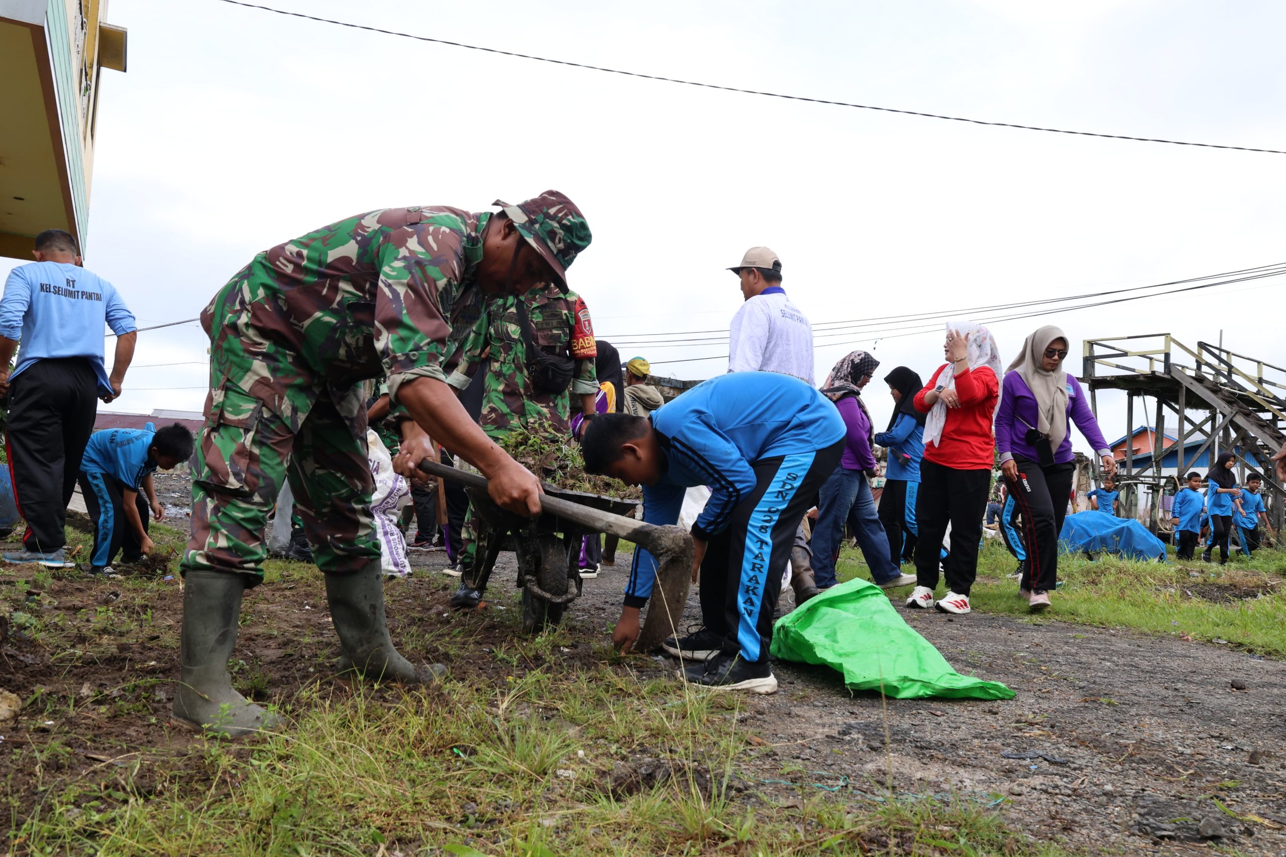 Tarakan – Dalam rangka menyambut HUT TNI Ke 80,Kodim 0907/Trk bersama masyarakat menggelar Karya Bakti Pembersihan Lingkungan diwilayah RT.13 Kelurahan Selumit Pantai,Kecamatan Tarakan Tengah,Jumat(12/09/2025).