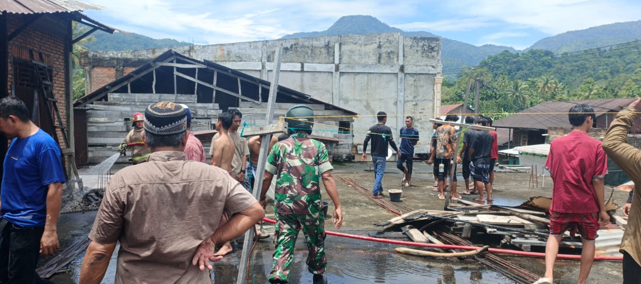 ACEH SELATAN – Babinsa Koramil 05/Samadua Kodim 0107/Aceh Selatan Serda Sudahnan bersama petugas Pemadam Kebakaran (Damkar) bergerak cepat memadamkan kobaran api yang membakar sebuah rumah warga di Gampong (Desa) Gunung Ketek Kecamatan Samadua, Jumat (5/9/2025).