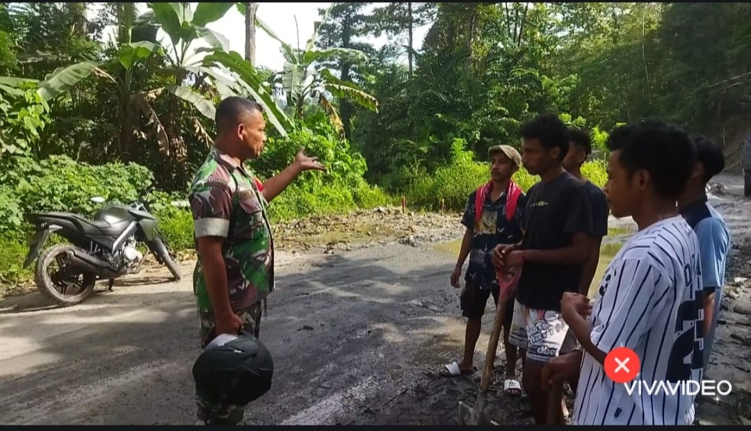 Gerak Cepat, Babinsa Koramil 1502-08/Waipia Kodim 1502/Masohi cegah aksi Pungli (Pungutan Liar) yang dilakukan oleh beberapa masyarakat yang memanfaatkan jalan rusak yang bertempat di Desa Layeni Kec. Teon nila serua Kab. Malteng. Selasa (08/04/2025).