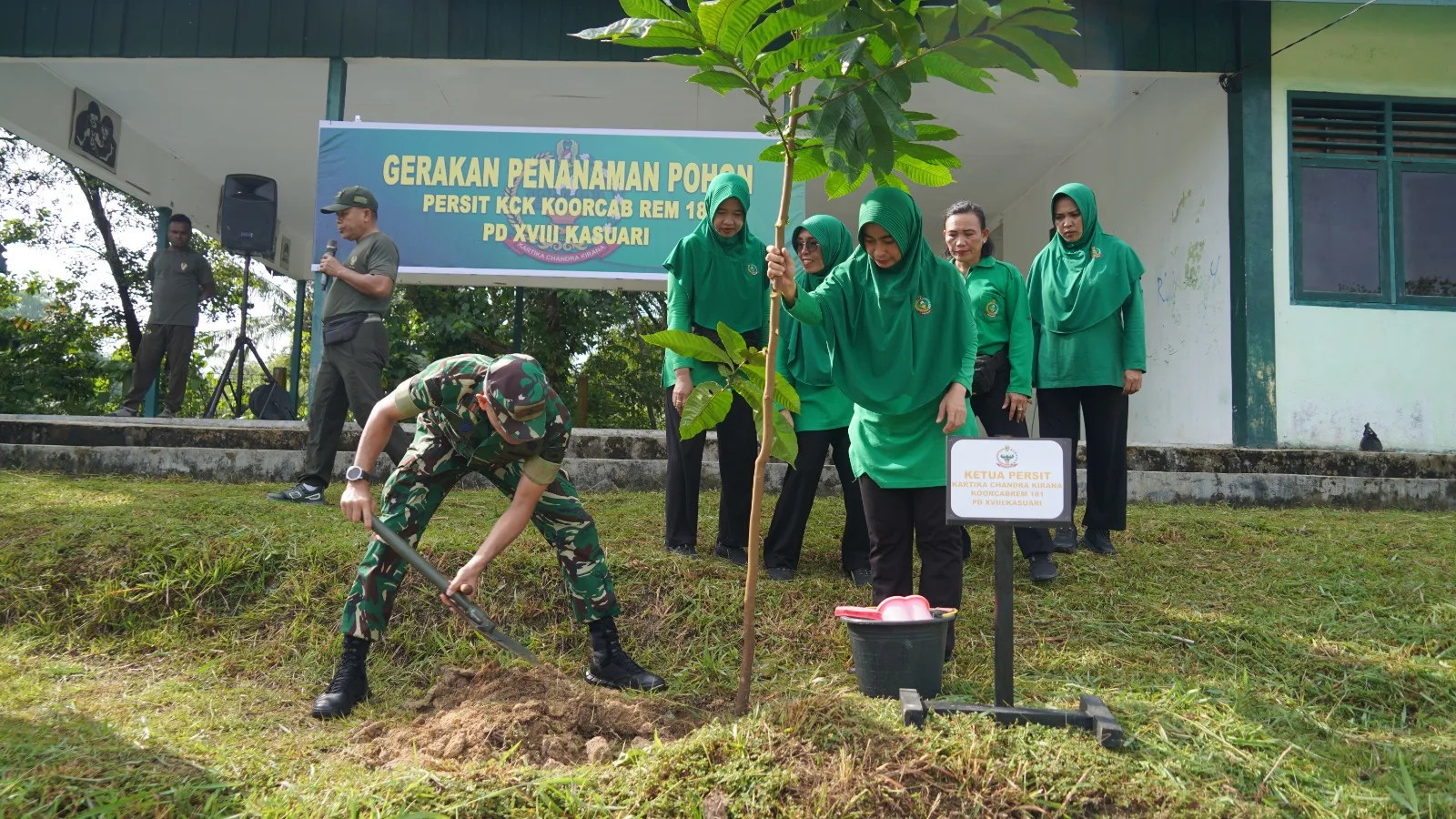 Dalam rangka mendukung pelestarian lingkungan, Persit Kartika Chandra Kirana Koorcab Rem 181 PD XVIII Kasuari melaksanakan kegiatan Gerakan Penanaman Pohon pada Jumat, 10 April 2026.