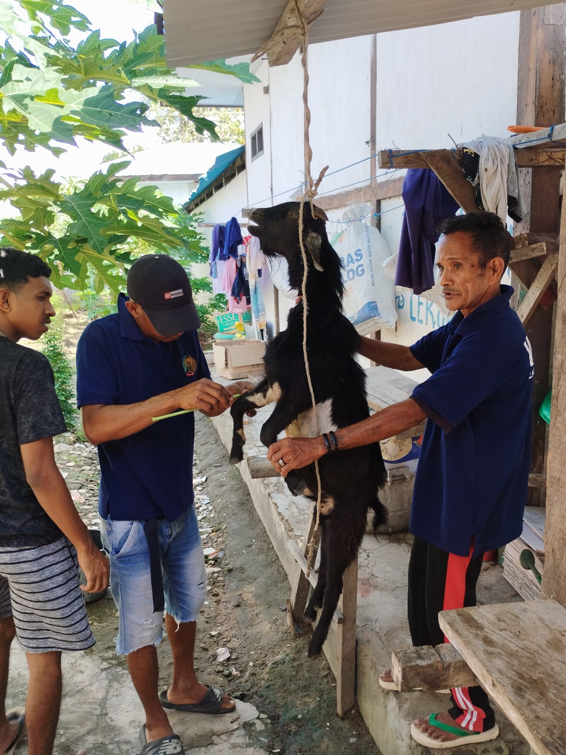 WONRELI, INFO_PAS- Dalam suasana penuh takwa dan khidmat, Lapas Kelas III Wonreli menyelenggarakan ibadah kurban Idul Adha 1446 H. Satu ekor kambing, sebagai hewan kurban, disembelih dengan penuh kesungguhan dan tertib, mengikuti tuntunan syariat Islam. Kegiatan ini melibatkan petugas lapas dan beberapa warga binaan yang terpilih, di bawah pengawasan ketat Kepala Lapas Wonreli, Bapak Christy Thenu. Proses penyembelihan dilaksanakan dengan memperhatikan aspek kebersihan dan keamanan pangan. Jumat (06/06/2025)