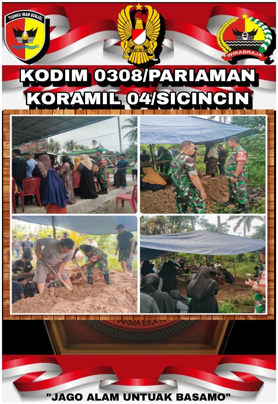 SICINCIN, – Babinsa koramil 04/Sicincin kodim 0308/ Pariaman, Sertu Perizal, melayat kerumah duka, serta ikut mengantarkan jenazah ke tempat Peristirahatan terakhir Almarhum Katik veteran yang meninggal dunia Pukul 01.00 WIB.Dini hari,jumat 5 September 2025,Di semayamkan Pada hari Jum’at tgl (05/09/2025). Almaruhum meninggal karna sakit bertempat di korong Sungai Asam, Nagari Sungai Asam, Kec. 2×11 Enam lingkung kabupaten Padang – Pariaman.