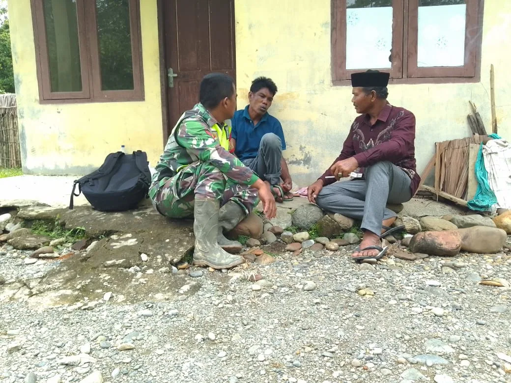 Nagan Raya, Babinsa Koramil 04/Beutong Kodim 0116/Nagan Raya Koptu Elpa Mardian bersama warga desa binaan berkomunikasi sosial dengan warga desa Kuta jeumpa, kecamatan Beutong Kabupaten Nagan Raya.