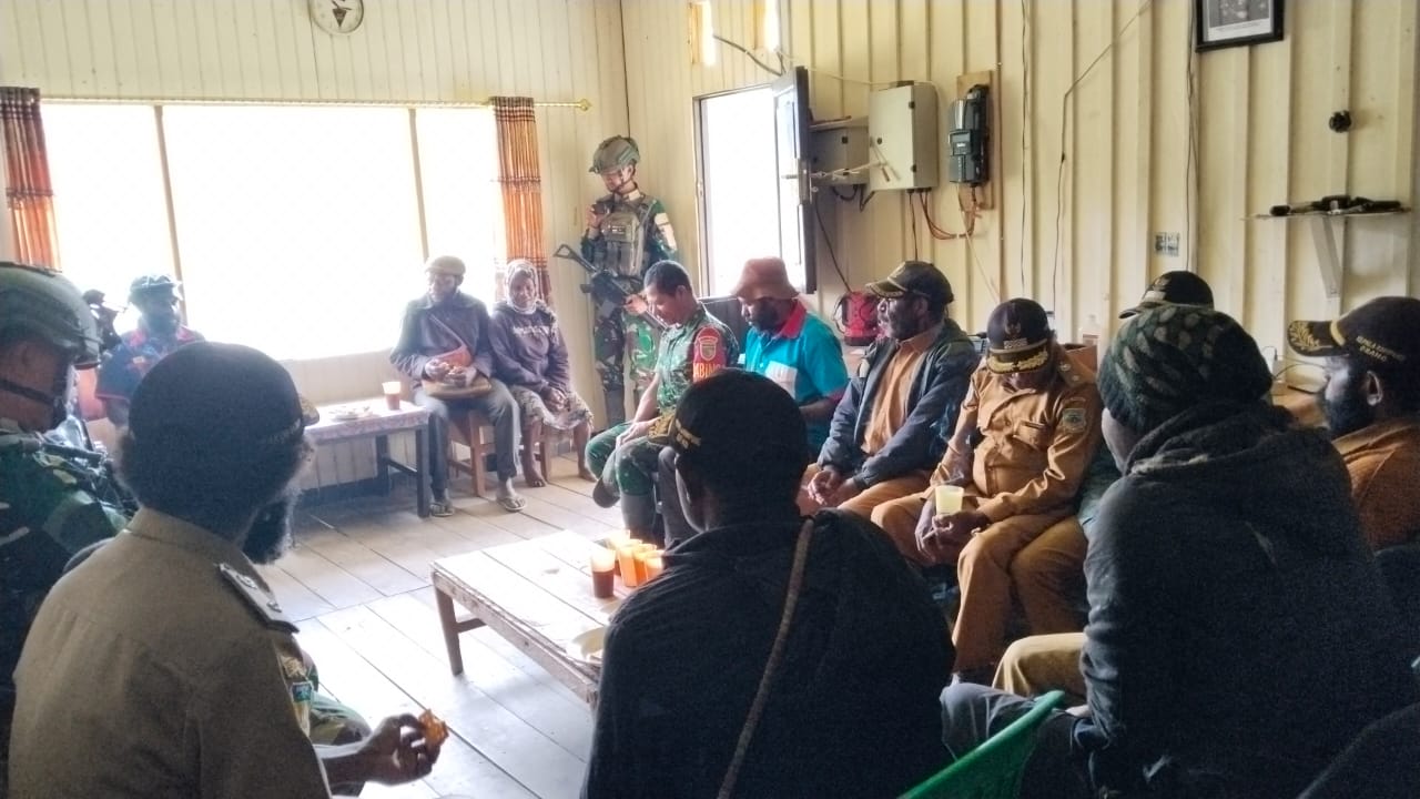 Obano – Babinsa Koramil 1703-03/Obano Serka Lewi Mansnandifu, beserta 2 orang anggota Babinsa, 15 orang Personel TK Obano Satgas Pamtas RI-PNG mobile Gobang V, anggota Polsek Obano, melaksanakan komsos dengan tokoh masyarakat,menghimbau dan mengajak tokoh tokoh masyarakat agar ikut selalu menjaga situasi Kamtibmas diwilayah Binaan. Bertempat di Polsek Obano. Kampung Obano, Distrik Paniai Barat, Kabupaten Paniai, Prov. Papua Tengah. Rabu,(24/09/2025).