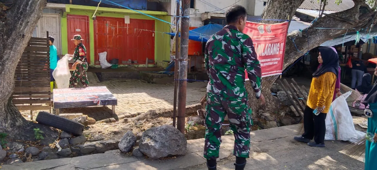 Enrekang – personil koramil 1419-02/Enrekang Melaksanakan karya bakti pembersihan pasar Sentral Enrekang dari tanah, rumput dan sampah lainnya sepanjang 150 meter di Kel. Juppandang Kec. Enrekang Kab. Enrekang. Jumat,(31/10/2025).