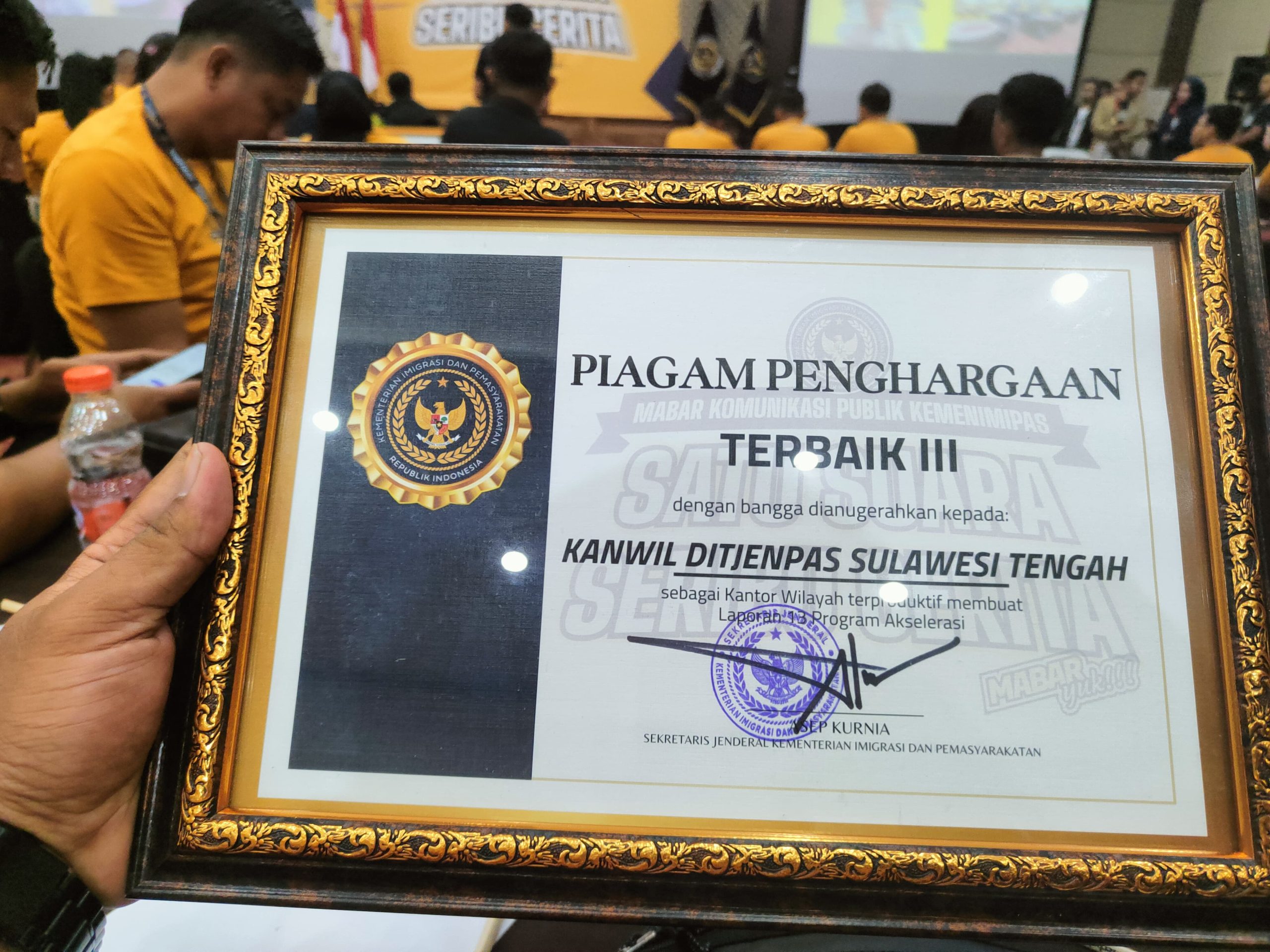 Kanwil Ditjenpas Sulteng Raih Penghargaan di MABAR Komunikasi Publik Kemenimipas