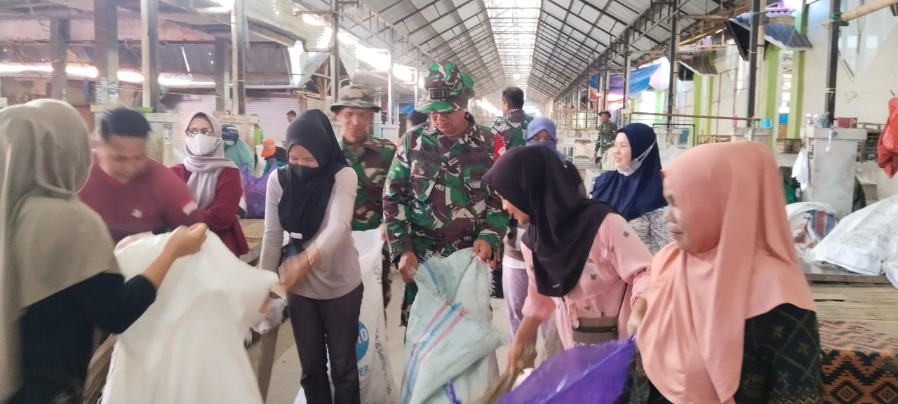 Enrekang _ Menjaga kebersihan lingkungan di wilayah teritorial terus digalakkan Personil Koramil 1419-02/Enrekang dengan warga Melaksanakan karya bakti pembersihan pasar Sentral Enrekang dari tanah, rumpu dan sampah lainnya sepanjang 200 meter di Kel. Juppandang Kec. Enrekang Kab. Enrekang, Jumat 19/09/2025