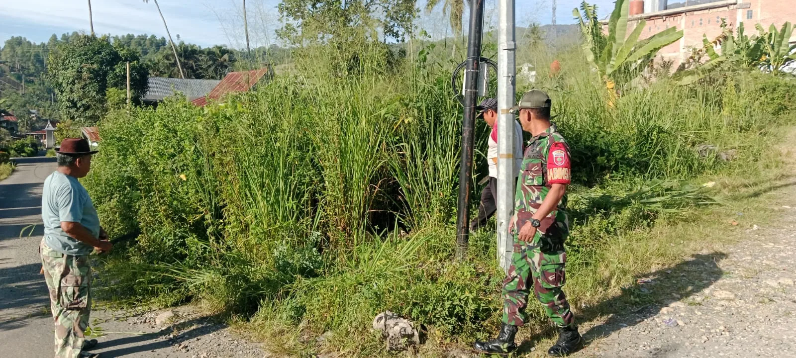 Babinsa bersama warga bergotong royong membersihkan sisi kiri dan kanan jalan guna menciptakan lingkungan yang bersih, rapi, dan aman bagi pengguna jalan. Kegiatan ini juga menjadi sarana mempererat hubungan silaturahmi serta meningkatkan kemanunggalan TNI dengan rakyat.
