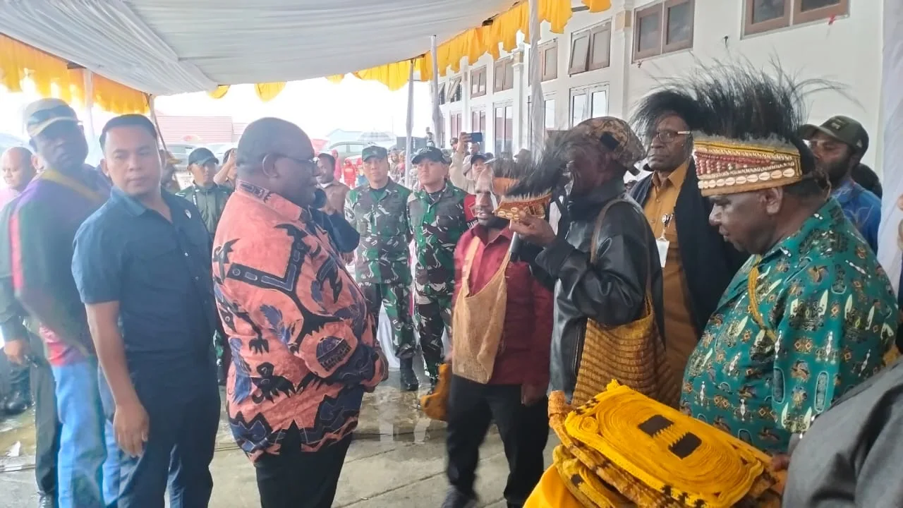 Deiyai – Kedatangan Bpk. Meki Fritz Nawipa, S.H (Gubernur Prov. Papua Tengah) beserta rombongan dalam rangka kunjungan kerja di Wilayah Kab. Deiyai, dengan menggunakan kendaraan dinas (mobil) dari Kab. Paniai di Kantor Bupati Jln. Poros Waghete-Enarotali, Kampung Waghete II, Distrik Tigi, Kab. Deiyai, Provinsi Papua Tengah Jumat, 7 November 2025.