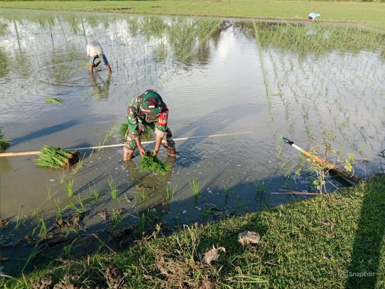 Sementara itu, pemilik lahan persawahan Bapak Rustang yang mendapat pendampingan mengucapkan “Terima kasih kepada pak Babinsa karena telah membantu menanam padi,