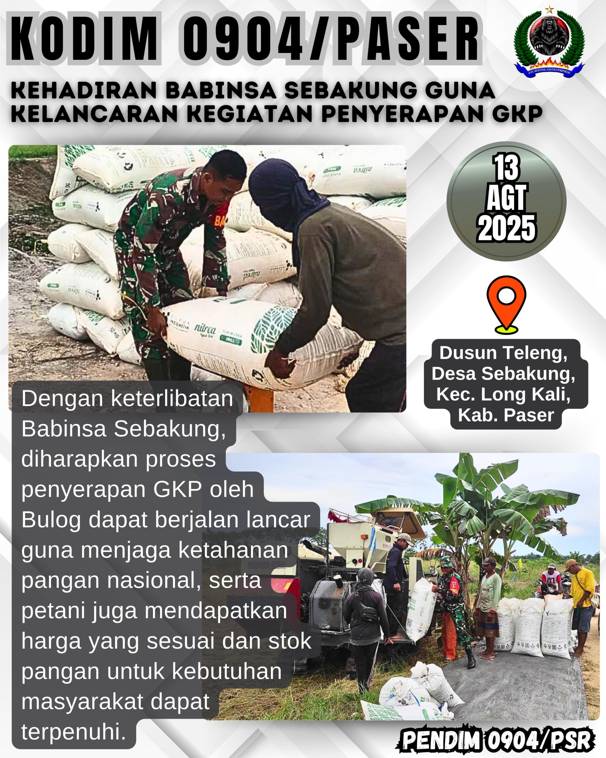 Peran Babinsa Sebakung dalam kegiatan ini yaitu membantu kelancaran proses penyerapan dan memastikan bahwa GKP yang diserap sesuai dengan standar yang ditetapkan.