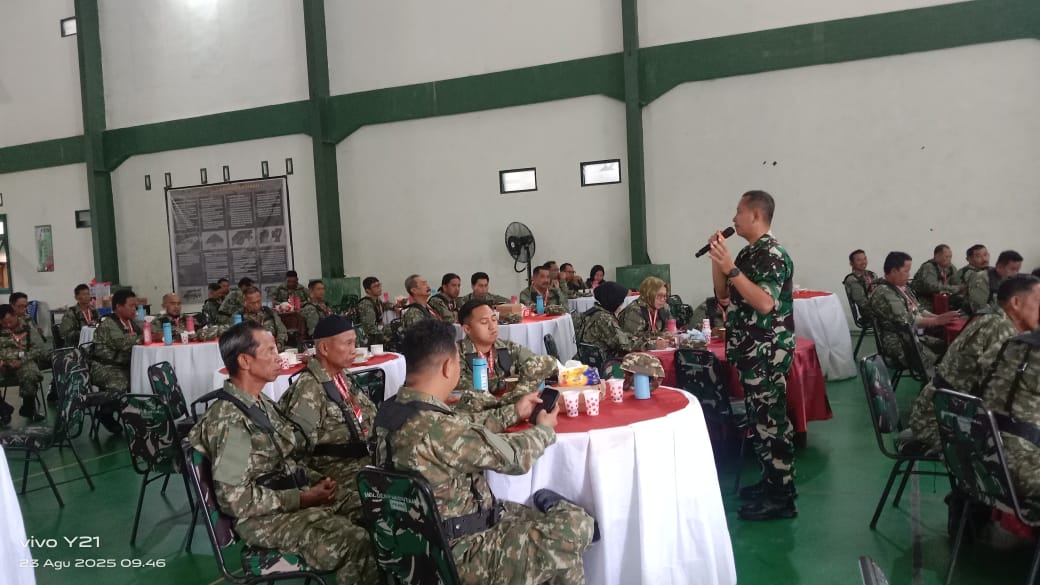 MAROS – Komandan Kodim (Dandim) 1422/Maros Letkol Arm Agung Yuhono, S. E memberikan materi wawasan kebangsaan dan penguatan Idiologi Pancasila, Sebanyak 80 kepala desa dari 14 kecamatan di Kabupaten Maros yang mengikuti retret orientasi kepemimpinan yang digelar di Markas Brigif 3/TBS Kostrad Kariango, Kecamatan Kabupaten Maros Sabtu (23/8/2025).