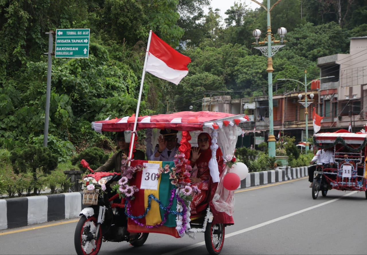 Keriahan HUT RI, Dandim 0107/Aceh Selatan Bersama Forkopimda Keliling Kota Tapaktuan dengan Becak Hias