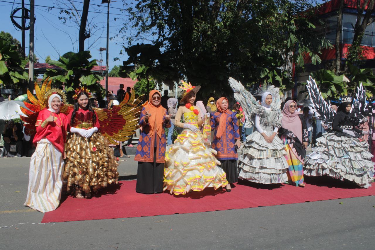 Dalam kegiatan tersebut Ny. Dera Abdullah bergabung dengan peserta dan berjalan melewati panggung kehormatan. Penampilannya yang cantik dan anggung membuat kagum ratusan warga yang menonton kegiatan tersebut.
