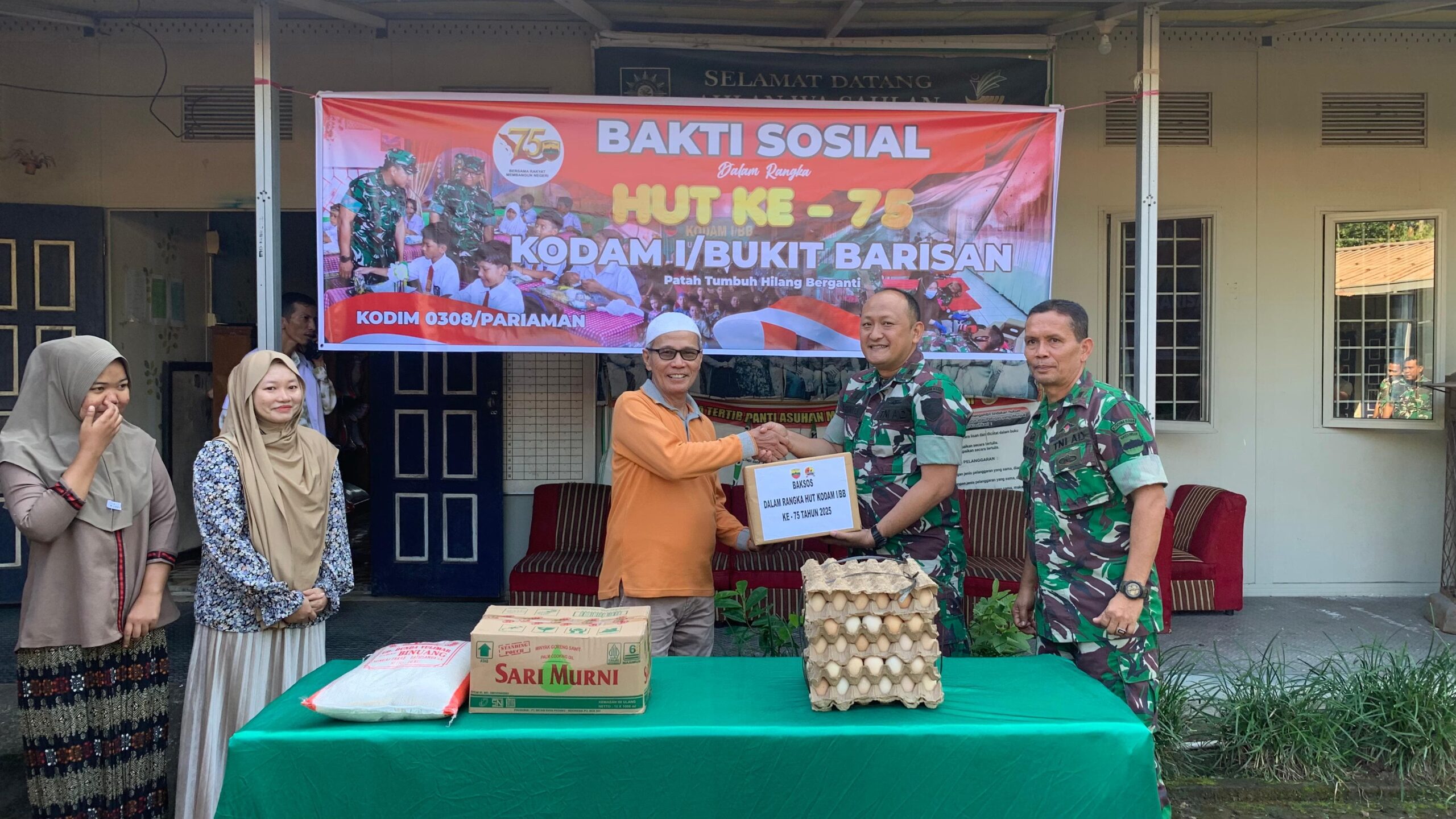 PARIAMAN, – Kodim 0308/Pariaman Melaksanakan kegiatan Bakti Sosial Dalam Rangka HUT Ke-75 Kodam 1/BB Kodim 0308/Pariaman Melaksanakan, Pemeriksaan Kesehatan, Pengobatan Gratis Dan Baksos Berupa Pemberian Sembako ke anak Panti Asuhan (LKSA) Muhammadiyah Kuraitaji Pariaman Selatan, Jum’at (13/06/2025).
