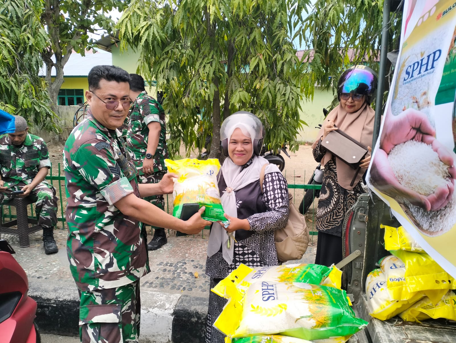 Kolaborasi Kodim 0308/Pariaman dan Perum Bulog Kanwil Sumbar dalam rangka program gerakan pangan murah menyalurkan beras SPHP, beras SPHP ini di salurkan per karung dengan 1 karung berat 5 kg di harga Rp. 62.500.00,-