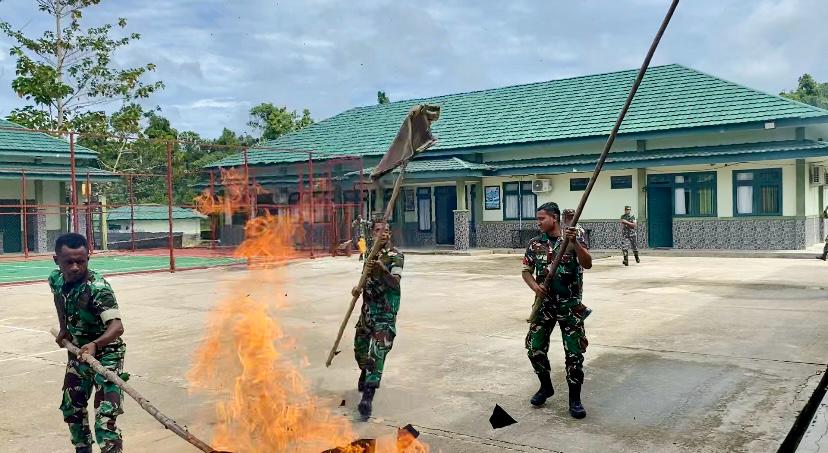 Dalam meningkatkan Kesiap Siagaan, Kodim 1807/Sorsel Gelar Latihan Kesiap siagaan Menghadapi Bahaya Kebakaran di Makodim 1807/Sorsel, jln Raya Ayamaru Teminabuan Distrik Wayer Kab Sorsel pada Rabu (09/04/2025).