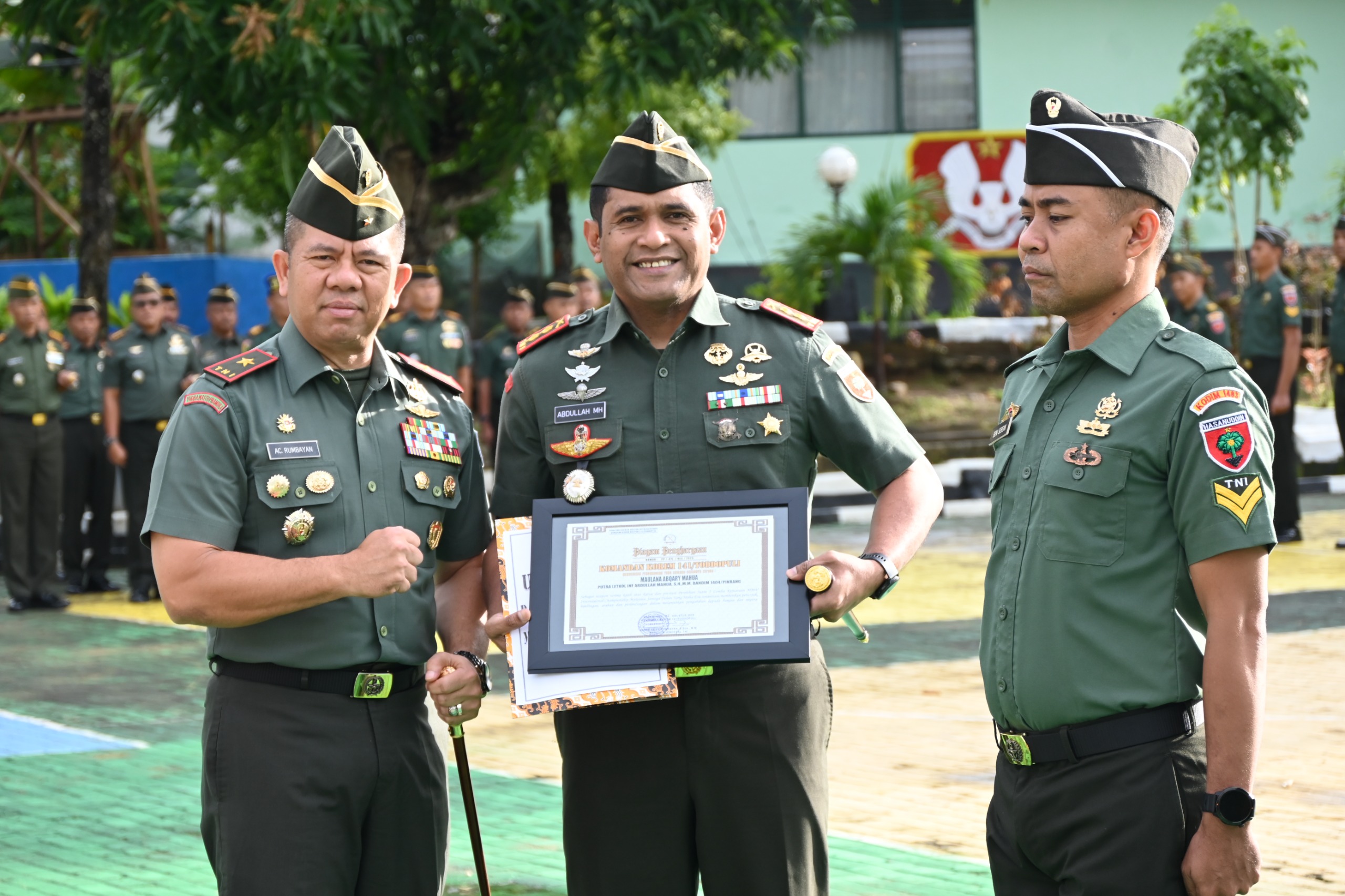 Pemberian Penghargaan ini diberikan atas prestasi serta keberhasilan Sersan Satu Beni Sesean sebagai Atlet yaitu Juara 3 kelas Komite perorangan 84 kg kategori usia diatas 40 (U40) Karate-Do Gojukai Global Championship Japan 2025, Maulana Abgary Mahua (Putra dari Letkol Inf Abdullah Mahua, S.H., M.M., Dandim 1404/Pinrang) sebagai Atlet yaitu Juara 2 Lomba Kejuaraan MBW Internasional Championship Malaysia, Adibah Fathin Sakilah (Putri dari Serda Muh. Nasrun, Babinsa Ramil 1407-19/Kahu Kodim 1407/Bone), sebagai Atlet yaitu Juara I kata perorangan usia dini putri piala Menpora RI 2024, Juara I kata beregu usia dini putri piala Menpora RI 2024, Juara 2 kata perorangan usia dini putri piala Presiden 2024, Lolos seleksi mengikuti turnamen Piala Panglima TNI yang akan dilaksanakan pada bulan September 2025 di Kalimantan Timur, Pratu Nasir Maisi (Babinsa Ramil 1414-09/Saluputti Kodim 1414/Tator), di bidang Atlet yaitu Juara 1 lomba Kejuaraan Nasional Dhuathin kategori TNI-POLRI di Ngawi.” Ujarnya.