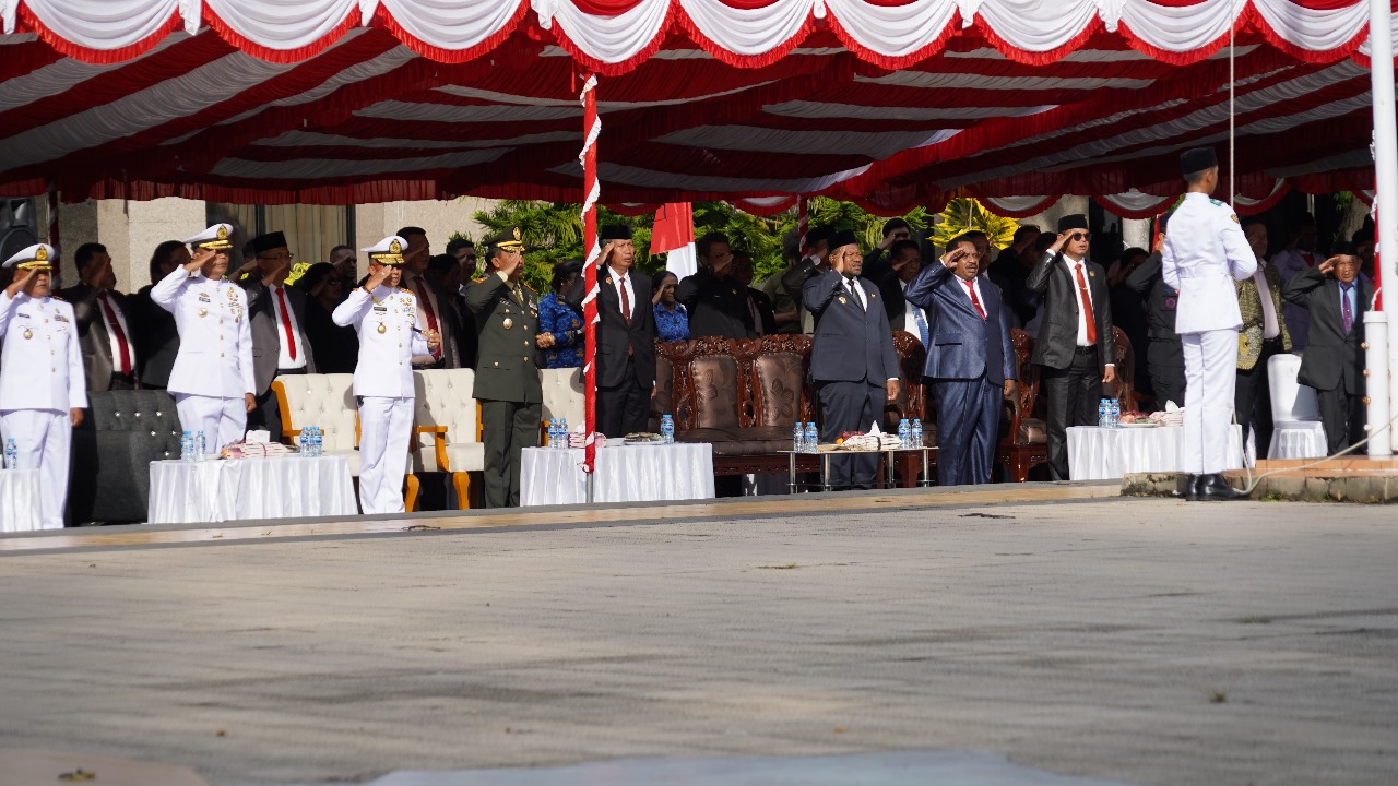 Gubernur Papua Barat Daya Elisa Kambu, S.Sos selaku Ispektur Upacara membacakan Pidato Kepala Badan Pembinaan Ideologi Pancasila Republik Indonesia pada Upacara Peringatan Hari Lahir Pancasila Tahun 2025 dengan tema “Memperkokoh Ideologi Pancasila, Menuju Indonesia Raya”.