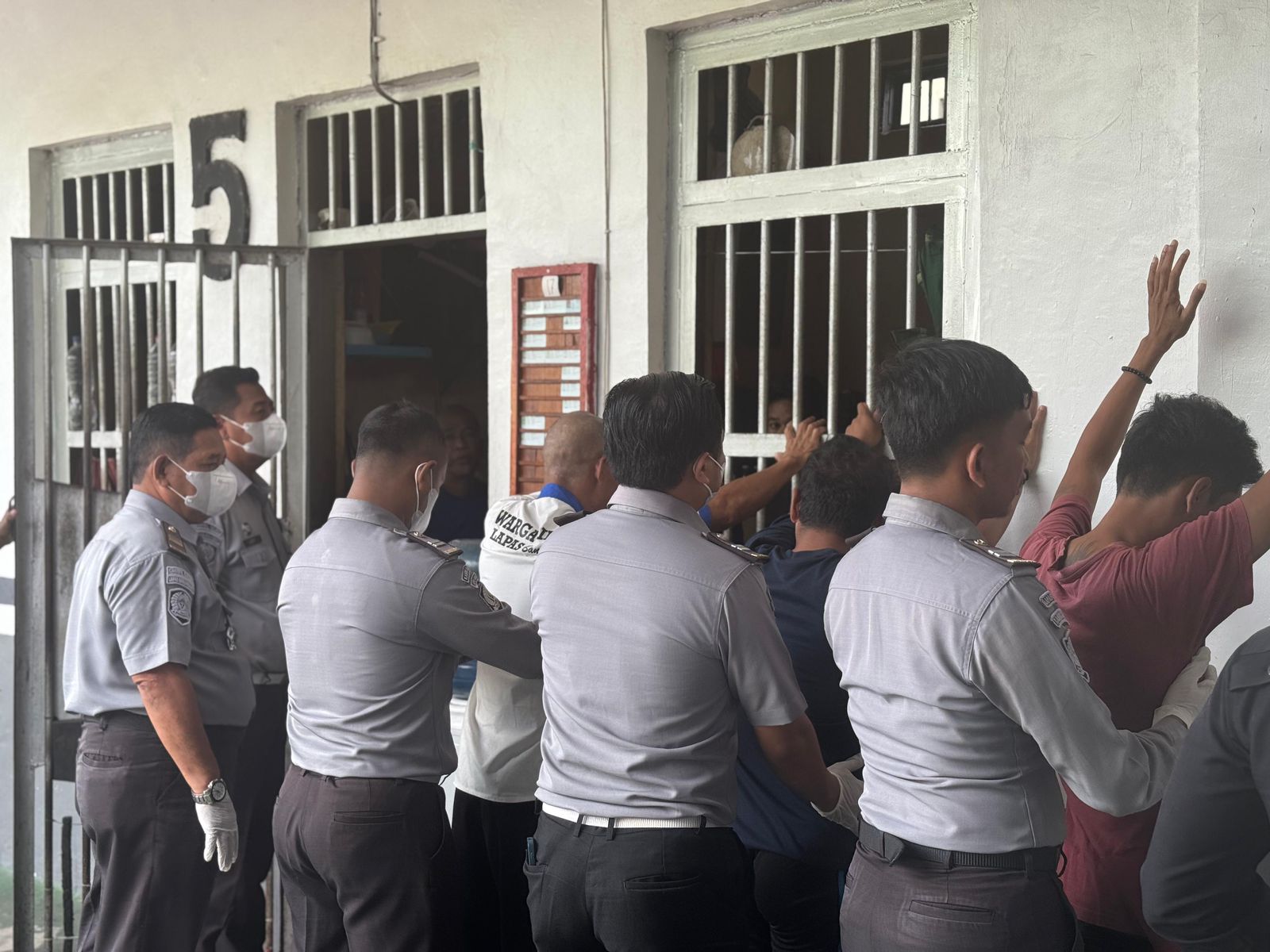 Kesatuan Pengamanan Lapas (Ka. KPLP), Medy Albar Suhartanto, bersama Kepala Seksi Administrasi Keamanan dan Ketertiban (Kamtib), Sabar Anju Padang, Kepala Subseksi Kamtib, Sahri Mulyanto, dan Kepala Subseksi Pelaporan dan Tata Tertib, Tri Andi Widiarto. Turut serta jajaran staf KPLP, staf Kamtib, dan anggota regu pengaman (rupam).