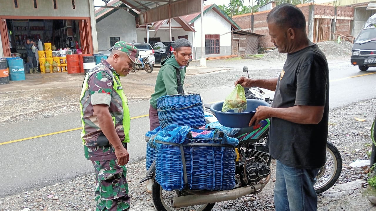 Dalam kegiatan tersebut, Koptu Ikrafiddin menyempatkan diri mendengarkan langsung keluhan dari Idris, seorang pedagang ikan keliling yang menggantungkan hidupnya dari hasil berdagang antar desa.