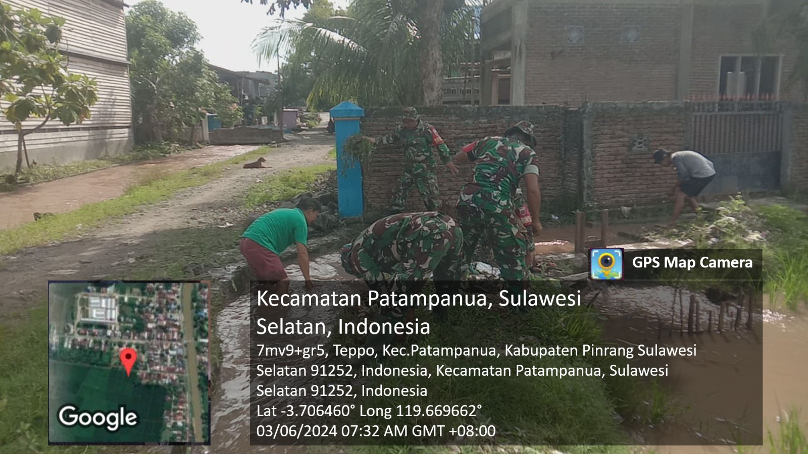 Kerja bakti tersebut dipimpin oleh Danramil-05/Patampanua Kapten Inf Abdul Muin dengan melibatkan Babinsa jajaran Koramil dan warga yang berdomisili di sekitar lokasi.